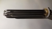 Vedenlämmitysvastus paneelin 35 voltin tasavirralle pelkkä kierrettävä 58 euroa tai ylhäältä säiliöön upotettava 150 euroa ilman vastusosan päällä näkyvää suojaverkkoa