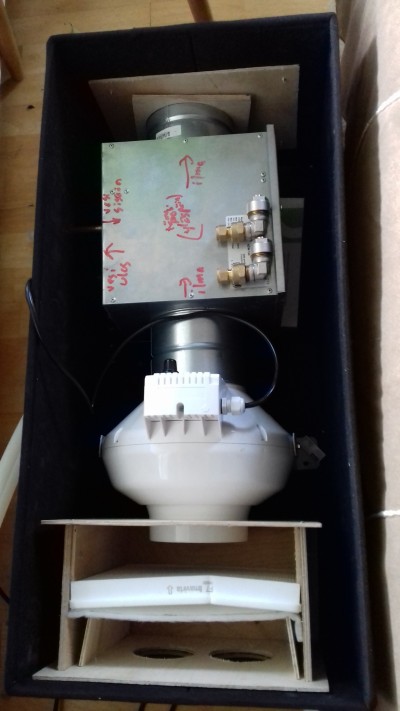 kanavapuhaltimen avulla suoraan huoneeseen ja käyttöveteen aallotetusta RST-putkesta tehdyllä
