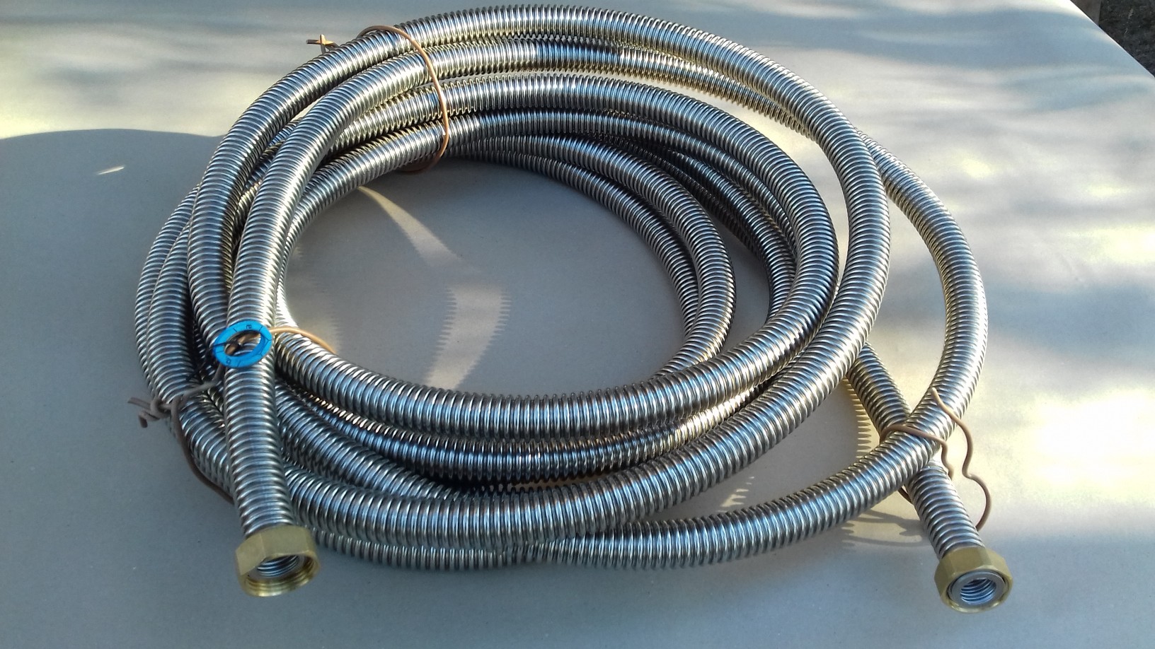 aallotettu haponkestävä RST-putki, liitin ja tiiviste molemmissa päissä,lämminvesikierukaksi/lämmönvaihtimeksi varaaja säiliöön, vesipataan tai