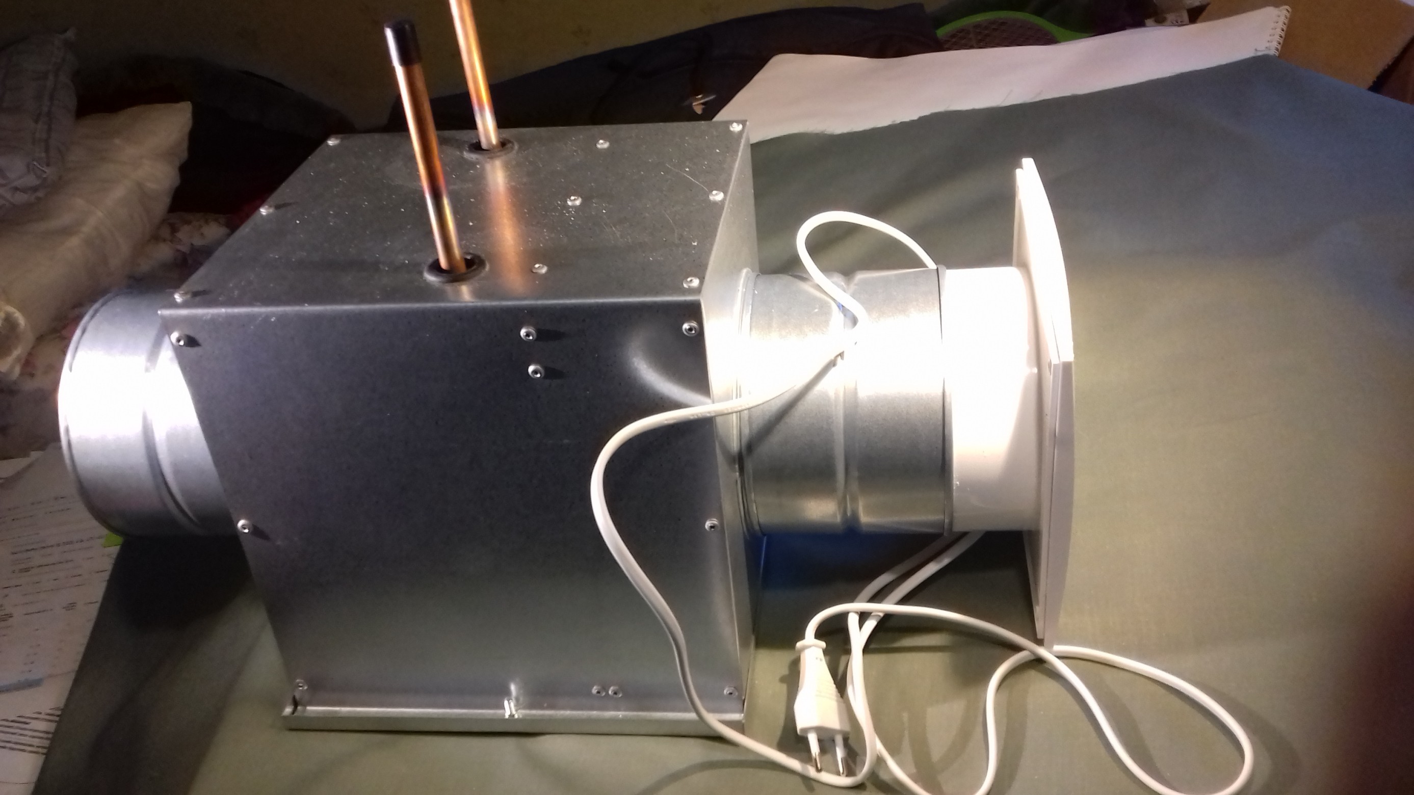 kanavapuhaltimen avulla suoraan huoneeseen ja käyttöveteen aallotetusta RST-putkesta tehdyllä