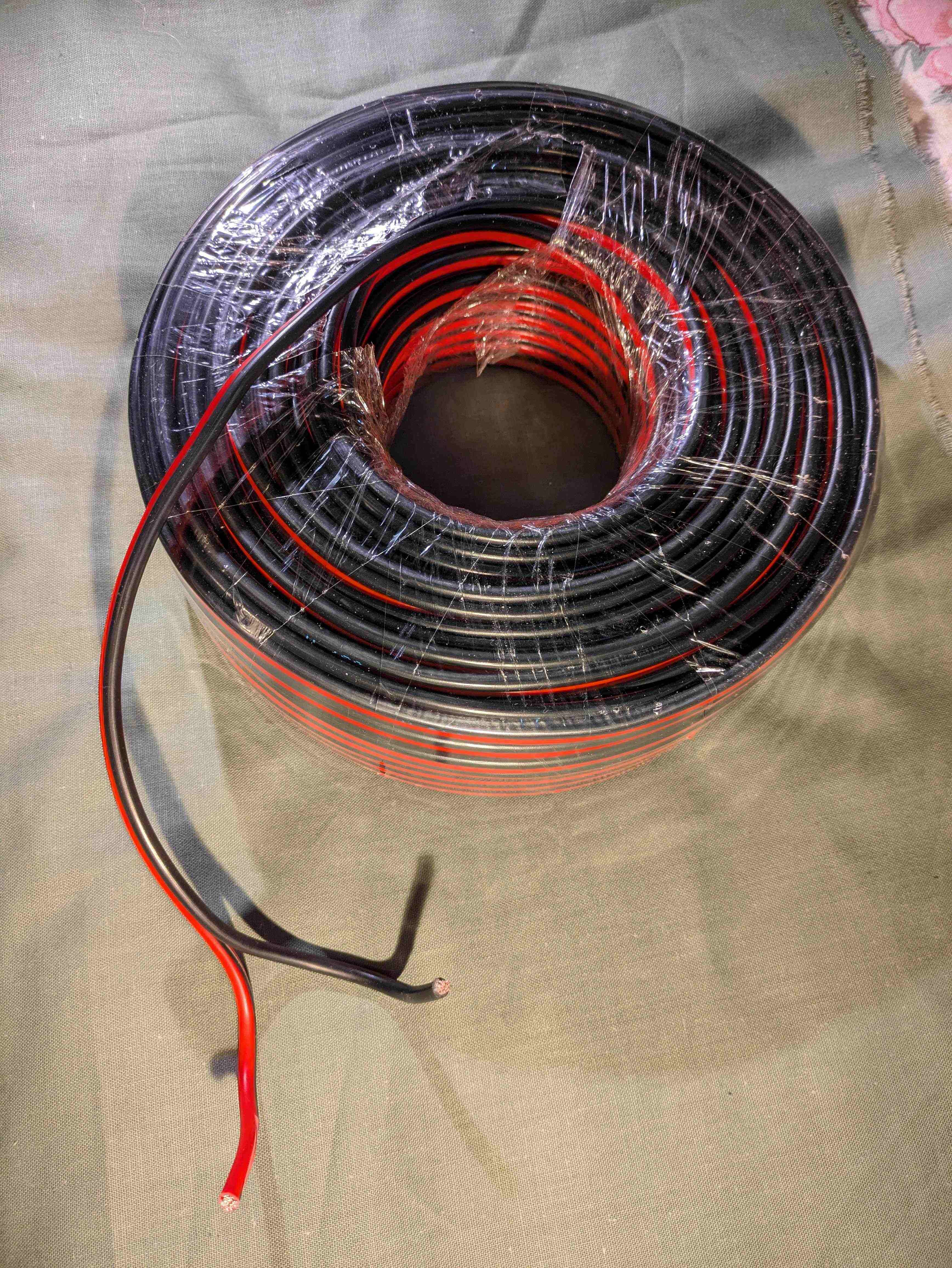 musta + punainen kaapeli 4 mm² kuparipäällysteiset alumiinisäikeet johdossa 1,50 e / m (siis kaksi johtoa 4+4 mm²/ m )