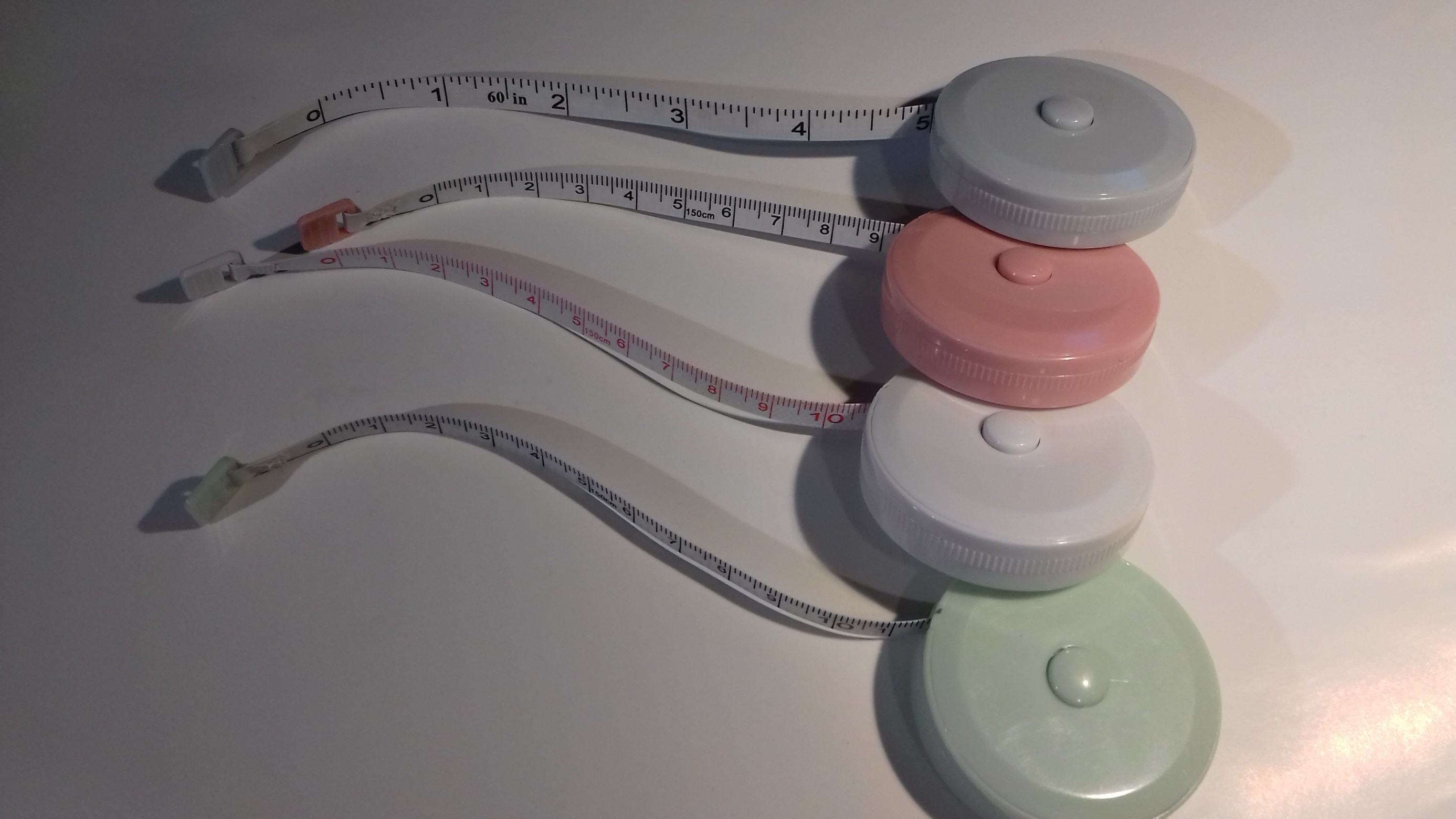 Toisella puolen mittanauhaa sentit ja toisella tuumat, tosi kätevää, ei tarvitse yrittää päässä laskea muuntamista sentit / tuumat